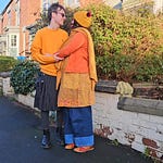 Josh and I are off for a spontaneous date night tonight at a nearby restaurant. My beautiful cardigan was made by Josh’s Mum (it's actually his, I'm just borrowing it). My dress is from Dangerfield Clothing and so is Josh’s kilt. My tights are from Snag and I got my boots from Collectif a few years ago. Josh is wearing Doc Martens and a jumper he got from eBay.